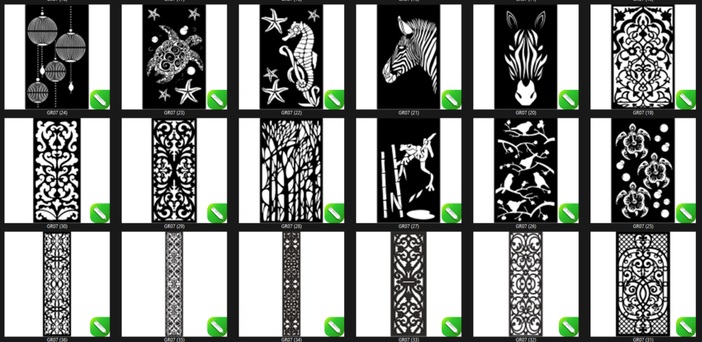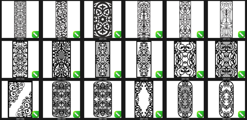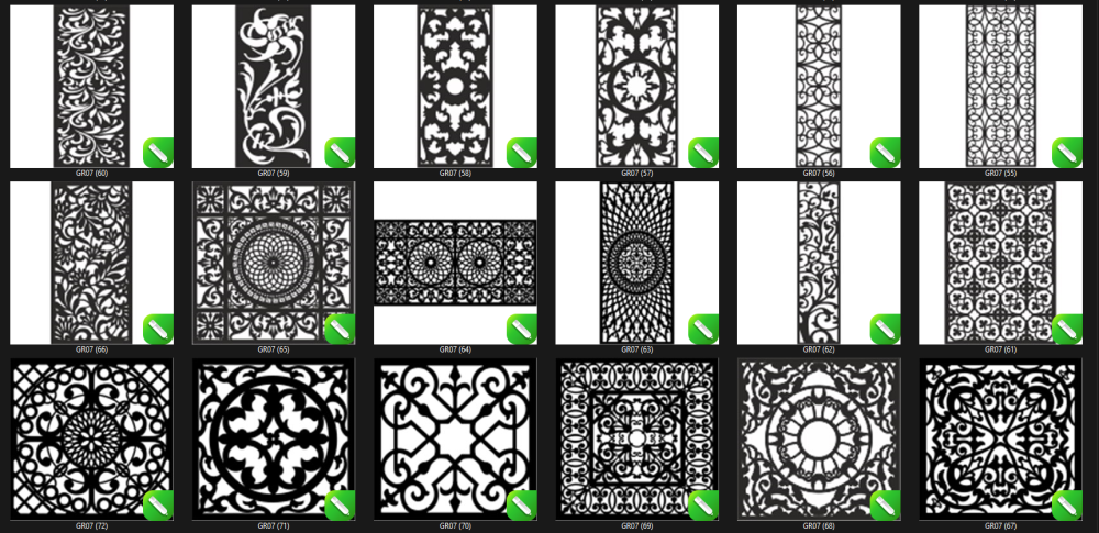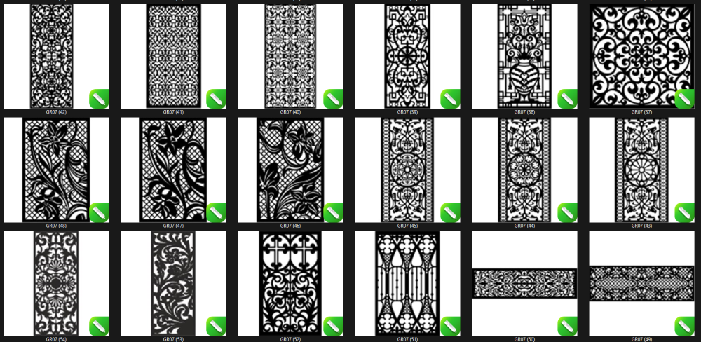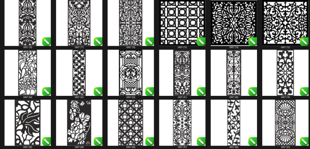 120 تصميم زخارف CNC ليزر - بارتشن - أبواب - حديد / خشب / ألمنيوم (GR07)